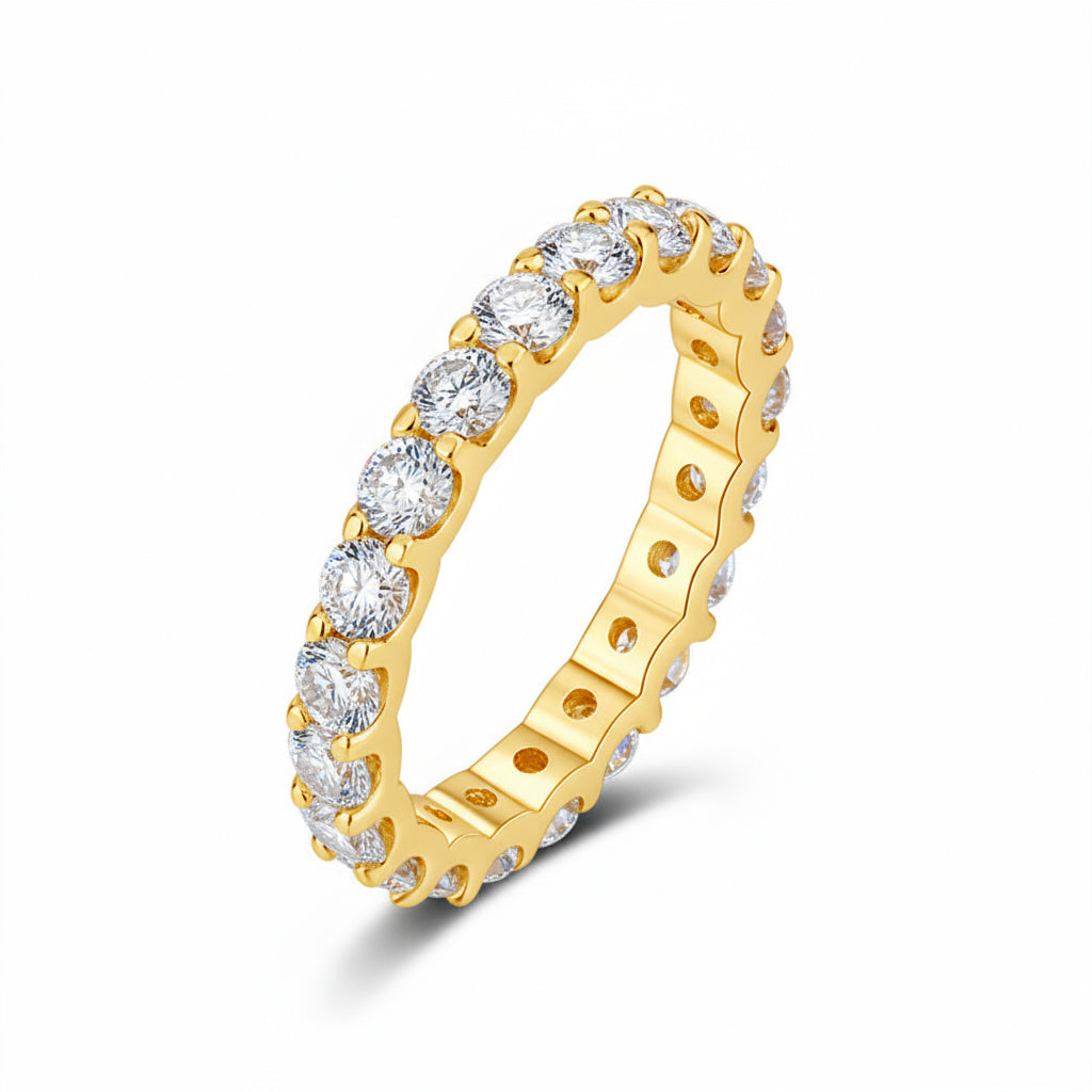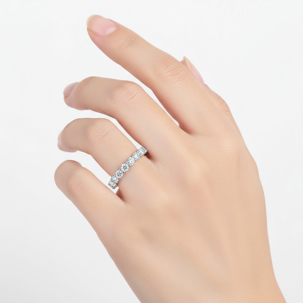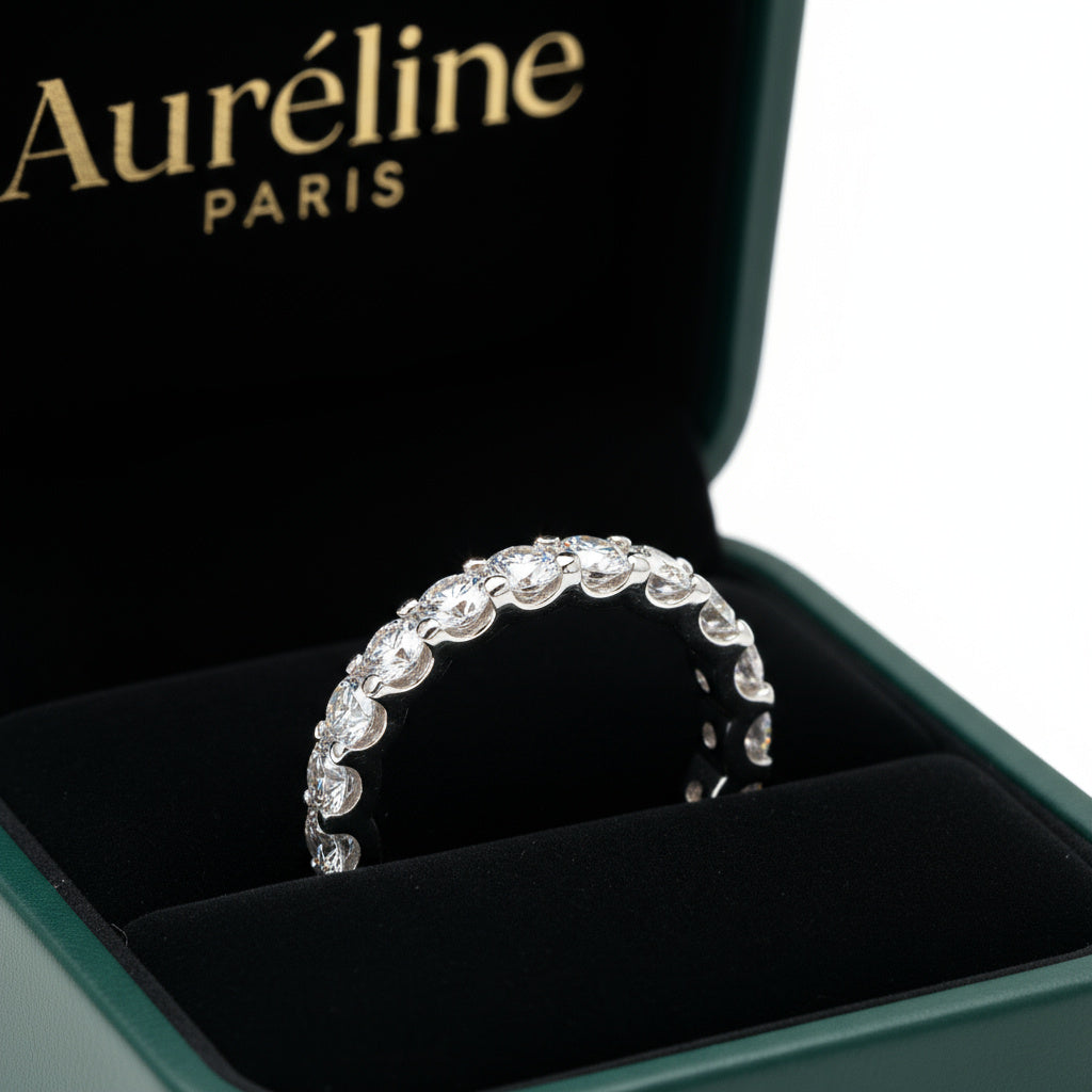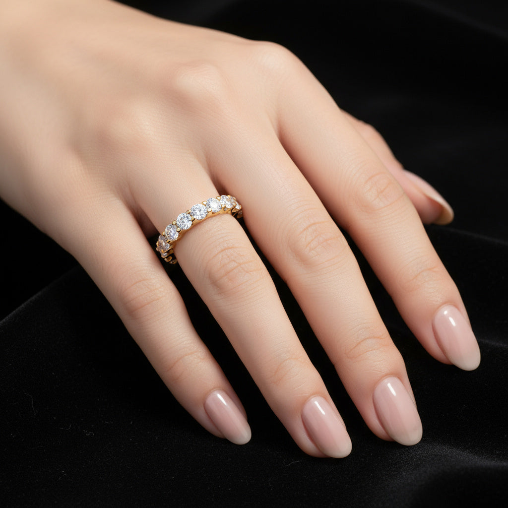 Grace in its purest form — the Clarté Band is a seamless circle of brilliance, where every stone is hand-set to reflect the quiet strength of eternal love. Its bezel-style design offers a modern interpretation of the classic eternity ring, catching the light with a soft, fluid shimmer from every angle.