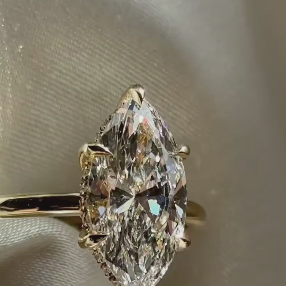 The Navette Brillante Ring is defined by its elegant marquise silhouette. The elongated Auréline Gem™ captures light with refined precision, creating brilliance that feels both graceful and bold.