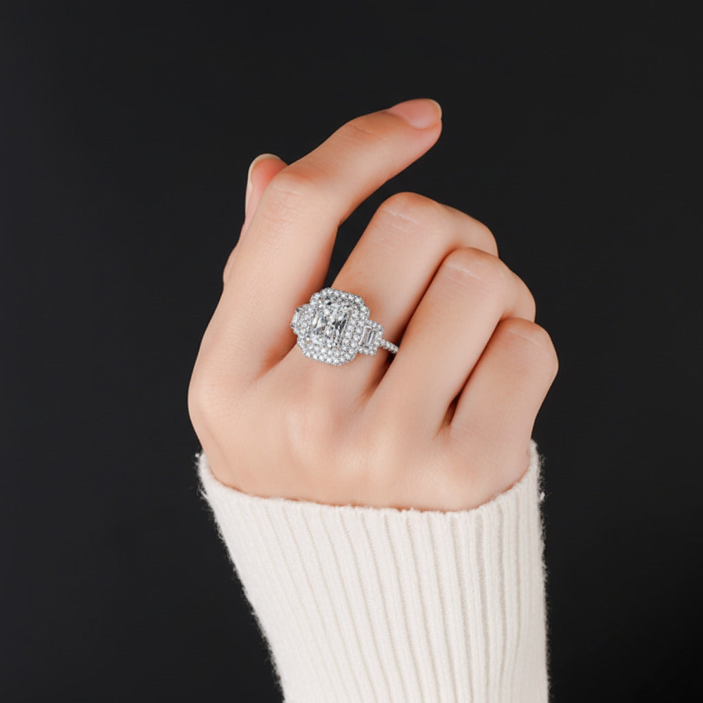 The Palais Éternel Ring evokes the architectural beauty of Parisian palaces, with a central stone that rises like a gleaming window framed by layers of intricate brilliance. The harmony between its structured profile and delicate pavé accents creates a visual symphony — elegant, bold, and exquisitely balanced.